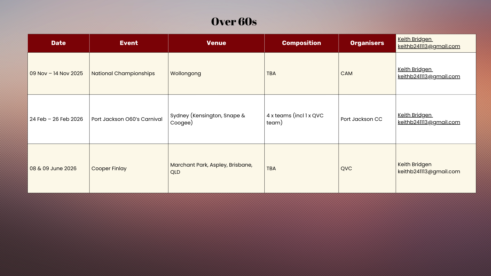 2025 QUEENSLAND VETERANS CRICKET CALENDAR