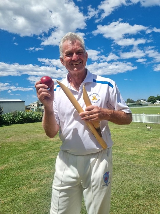 The teams were stacked with representatives from Queensland O60s recent Nationals tournament and some NSW players including an Australian representative Eric Higgins. Everyone was looking forward to a fantastic competitive, but fun day of cricket. The teams were led by Alana Bougoure (Qld) and Barry Hill (Coffs Harbour). Michael Rattenbury represented the Qld team as manager and provided some opening words for the contest.