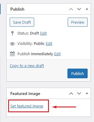 - In the right-hand menu, click on “Featured image” to set a featured image for your post.